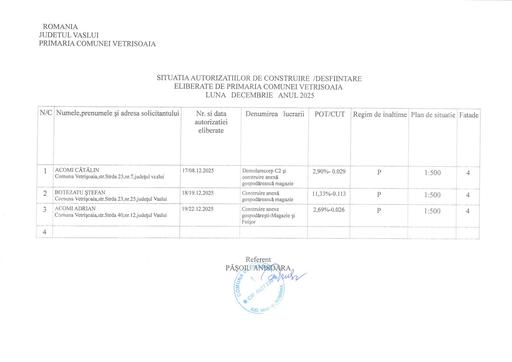 Home » Autorizatii de construire si certificate de urbanism Folder Autorizatii de construire si certificate de urbanism Home » Autorizatii de construire si certificate de urbanism » AC si CU decembrie 2025 pdf AC si CU decembrie 2025 Published on 05 January 2026 Modified on 05 January 2026 By vetri 32 downloads Download (pdf, 402 KB) AC si CU decembrie 2025.pdf Home » Autorizatii de construire si certificate de urbanism » AC si CU februarie 2024 pdf AC si CU februarie 2024 Published on 01 March 2024 By vetri 397 downloads Download (pdf, 300 KB) AC si CU februarie 2024.pdf Home » Autorizatii de construire si certificate de urbanism » AC si CU februarie 2026 pdf AC si CU februarie 2026 Published on 02 March 2026 Modified on 02 March 2026 By vetri 12 downloads Download (pdf, 3.77 MB) AC si CU februarie 2026.pdf Home » Autorizatii de construire si certificate de urbanism » AC si CU iunie 2024 pdf AC si CU iunie 2024 Published on 01 July 2024 By vetri 341 downloads Download (pdf, 5.89 MB) AC si CU iunie 2024.pdf Home » Autorizatii de construire si certificate de urbanism » AC si CU noiembrie 2025 pdf AC si CU noiembrie 2025 Published on 02 December 2025 Modified on 02 December 2025 By vetri 54 downloads Download (pdf, 375 KB) AC si CU noiembrie 2025.pdf Home » Autorizatii de construire si certificate de urbanism » Certificate de urbanism luna aprilie 2025 pdf Certificate de urbanism luna aprilie 2025 Published on 05 May 2025 Modified on 05 May 2025 By vetri 158 downloads Download (pdf, 537 KB) Certificate de urbanism luna aprilie 2025.pdf Home » Autorizatii de construire si certificate de urbanism » CU iunie 2025 pdf CU iunie 2025 Published on 01 July 2025 By vetri 109 downloads Download (pdf, 383 KB) CU iunie 2025.pdf Home » Autorizatii de construire si certificate de urbanism » Cu si AC ianuarie 2025 pdf Cu si AC ianuarie 2025 Published on 03 February 2025 By vetri 189 downloads Download (pdf, 366 KB) Cu si AC ianuarie 2025.pdf Home » Autorizatii de construire si certificate de urbanism » Cu si AC noiembrie 2024 pdf Cu si AC noiembrie 2024 Published on 02 December 2024 By vetri 217 downloads Download (pdf, 392 KB) Cu si AC noiembrie 2024.pdf Home » Autorizatii de construire si certificate de urbanism » CU si AC septembrie 2025 pdf CU si AC septembrie 2025 Published on 01 October 2025 Modified on 01 October 2025 By vetri 89 downloads Download (pdf, 352 KB) CU si AC septembrie 2025.PDF Home » Autorizatii de construire si certificate de urbanism » Lista AC luna martie 2025 pdf Lista AC luna martie 2025 Published on 01 April 2025 By vetri 178 downloads Download (pdf, 420 KB) Lista AC luna martie 2025.pdf Home » Autorizatii de construire si certificate de urbanism » Lista AC si AD luna mai 2024 pdf Lista AC si AD luna mai 2024 Published on 03 June 2024 By vetri 272 downloads Download (pdf, 190 KB) Lista AC si AD luna mai 2024.pdf Home » Autorizatii de construire si certificate de urbanism » Lista AC si Cu martie 2026 pdf Lista AC si Cu martie 2026 Published on 01 April 2026 Modified on 01 April 2026 By vetri Download (pdf, 375 KB) Lista AC si Cu martie 2026.pdf Home » Autorizatii de construire si certificate de urbanism » Lista CU luna mai 2024 pdf Lista CU luna mai 2024 Published on 03 June 2024 By vetri 295 downloads Download (pdf, 272 KB) Lista CU luna mai 2024.pdf Home » Autorizatii de construire si certificate de urbanism » Lista CU luna august 2024 pdf Lista CU luna august 2024 Published on 02 September 2024 By vetri 232 downloads Download (pdf, 380 KB) Lista CU luna august 2024.pdf Home » Autorizatii de construire si certificate de urbanism » Lista CU si AC ianuarie 2026 pdf Lista CU si AC ianuarie 2026 Published on 02 February 2026 Modified on 02 February 2026 By vetri 25 downloads Download (pdf, 368 KB) Lista CU si AC ianuarie 2026.pdf Home » Autorizatii de construire si certificate de urbanism » Lista CU si AC octombrie 2025 pdf Lista CU si AC octombrie 2025 Published on 03 November 2025 Modified on 03 November 2025 By vetri 60 downloads Download (pdf, 381 KB) Lista CU si AC octombri e2025.pdf Home » Autorizatii de construire si certificate de urbanism » Situatii AC si CU martie 2024 pdf Situatii AC si CU martie 2024 Published on 01 April 2024 By vetri 292 downloads Download (pdf, 269 KB) Situatii AC si CU martie 2024..pdf