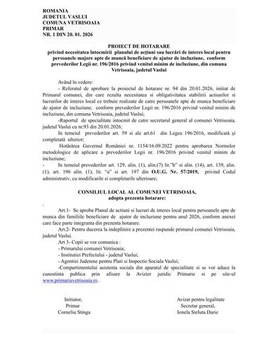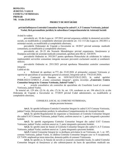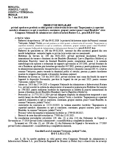 PROIECT DE HOTARAREprivind aprobarea predării cu titlul gratuit a obiectivului de investiţii “Împrejmuire şi copertină metalică, alimentare cu apă şi canalizare, containere, grupuri sanitare punct vamal Bumbăta” către Compania Na.docx