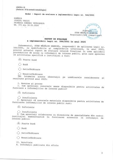 Home » Transparenta decizionala Folder Transparenta decizionala Home » Transparenta decizionala » Raport 544 2001 pentru anul 2025 pdf Raport 544 2001 pentru anul 2025 Published on 18 February 2026 Modified on 18 February 2026 By vetri 19 downloads Download (pdf, 2.33 MB) Raport 544-2001 pentru anul 2025.pdf